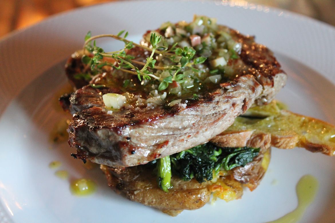 - Black pork steak, toast, mushrooms, egg and black truffle
