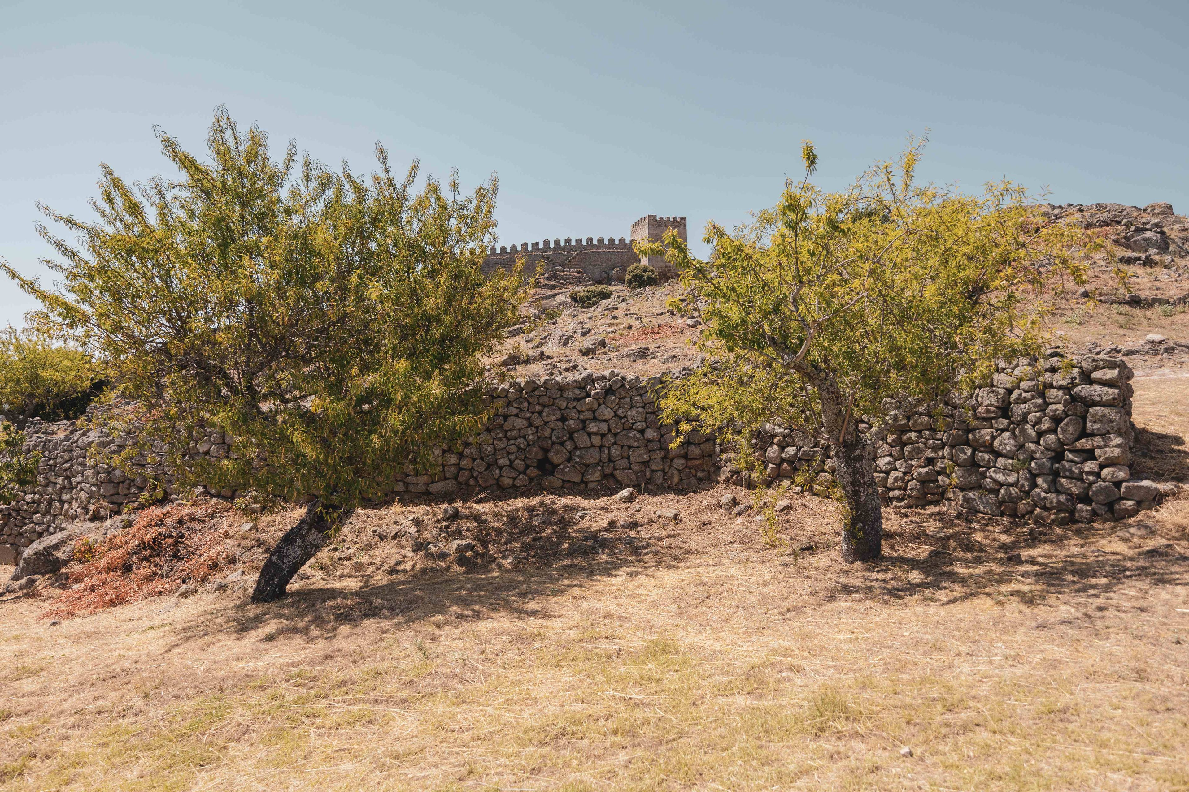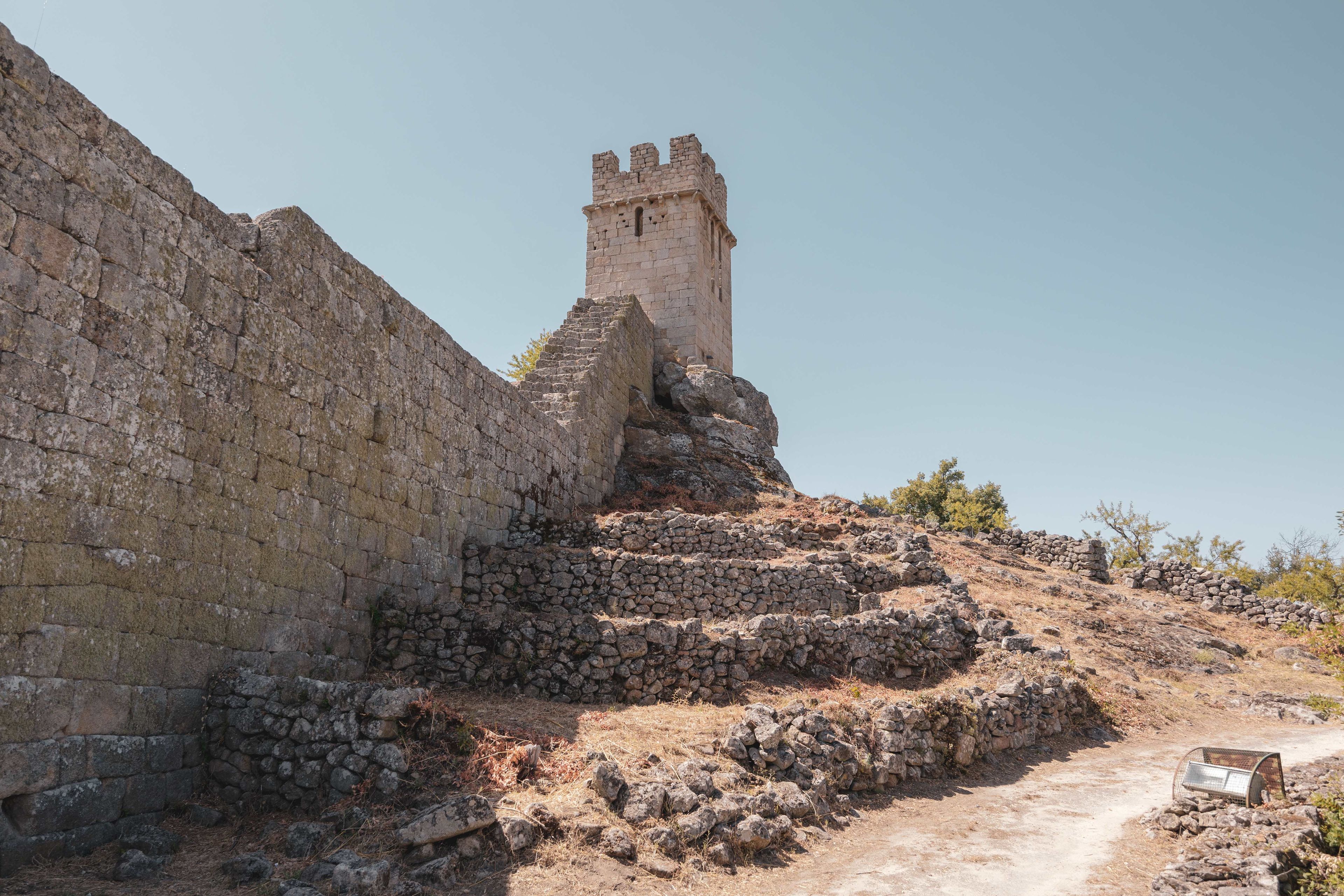 It is visually dominant and has a vast walled perimeter, probably built in the Lower Middle Ages. The wall had four gates and fifteen towers, of which six remain. Inside the wall you can see traces of buildings, the Romanesque church of St. Mary and a cistern. Outside is the pre-Romanesque chapel of St. Peter and a necropolis with 10 anthropomorphic graves.