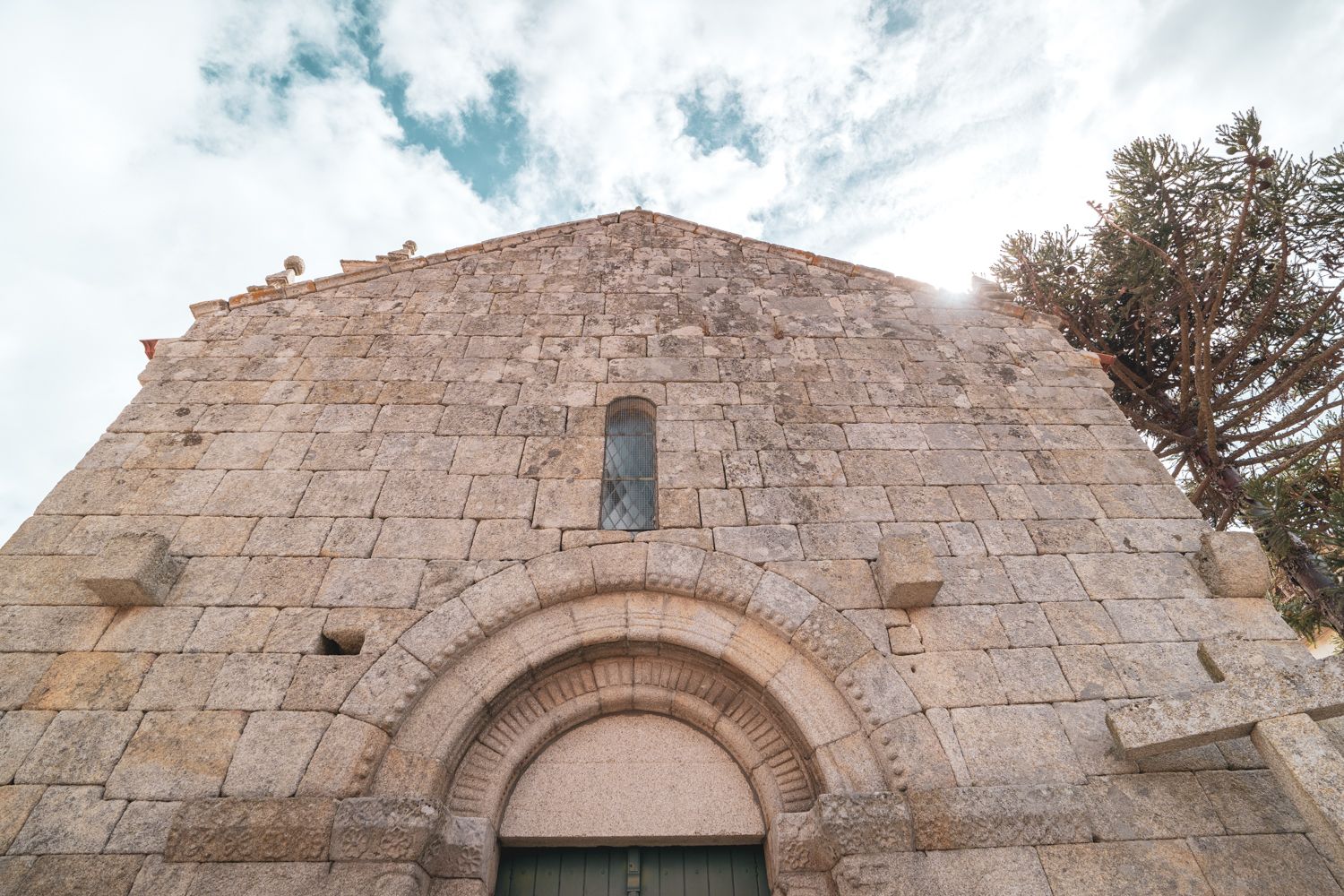 It has undergone a great deal of intervention in the modern era, but retains several elements of the original construction, such as the portals (axial and lateral), the corbelled finish of the nave, the arches inside, ashlars with marks of Romanesque flower beds and corbels in the sacristy.