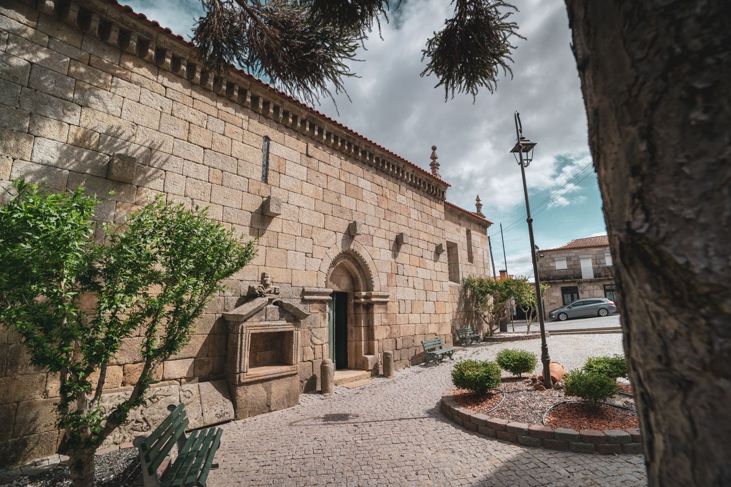 The Church of Nossa Senhora Da the Assumption, in the center of the urban core of Barcos, is a temple of medieval origin around which the village developed, the center of a fertile agricultural region. Here stands a Romanesque-Gothic church, built after the Sanctuary of Nossa Senhora do Sabroso, which was the original seat of the parish. It is a rectangular church with a single nave and a Mannerist chancel, lower and narrower, with a sacristy attached to the left side façade.