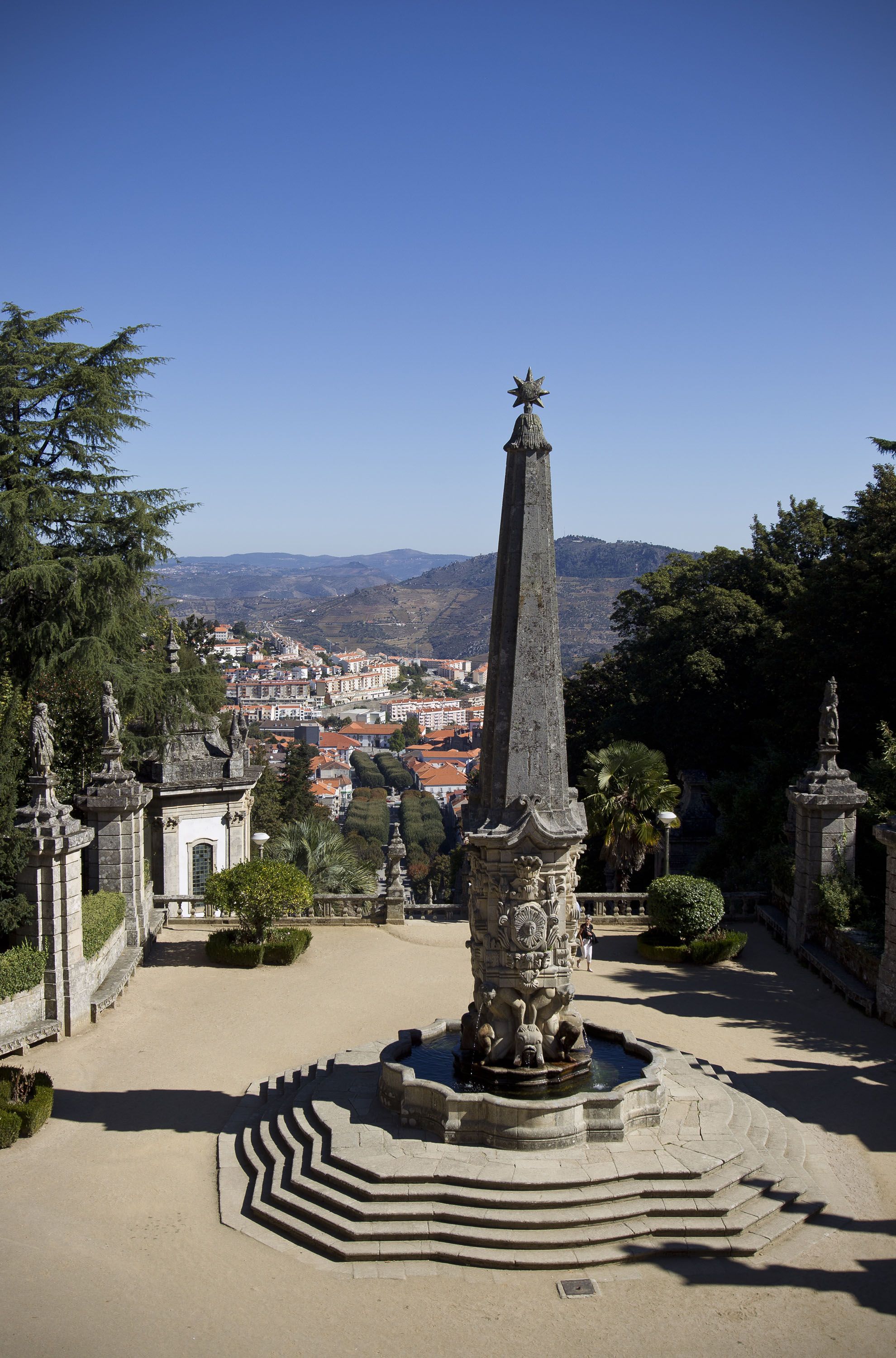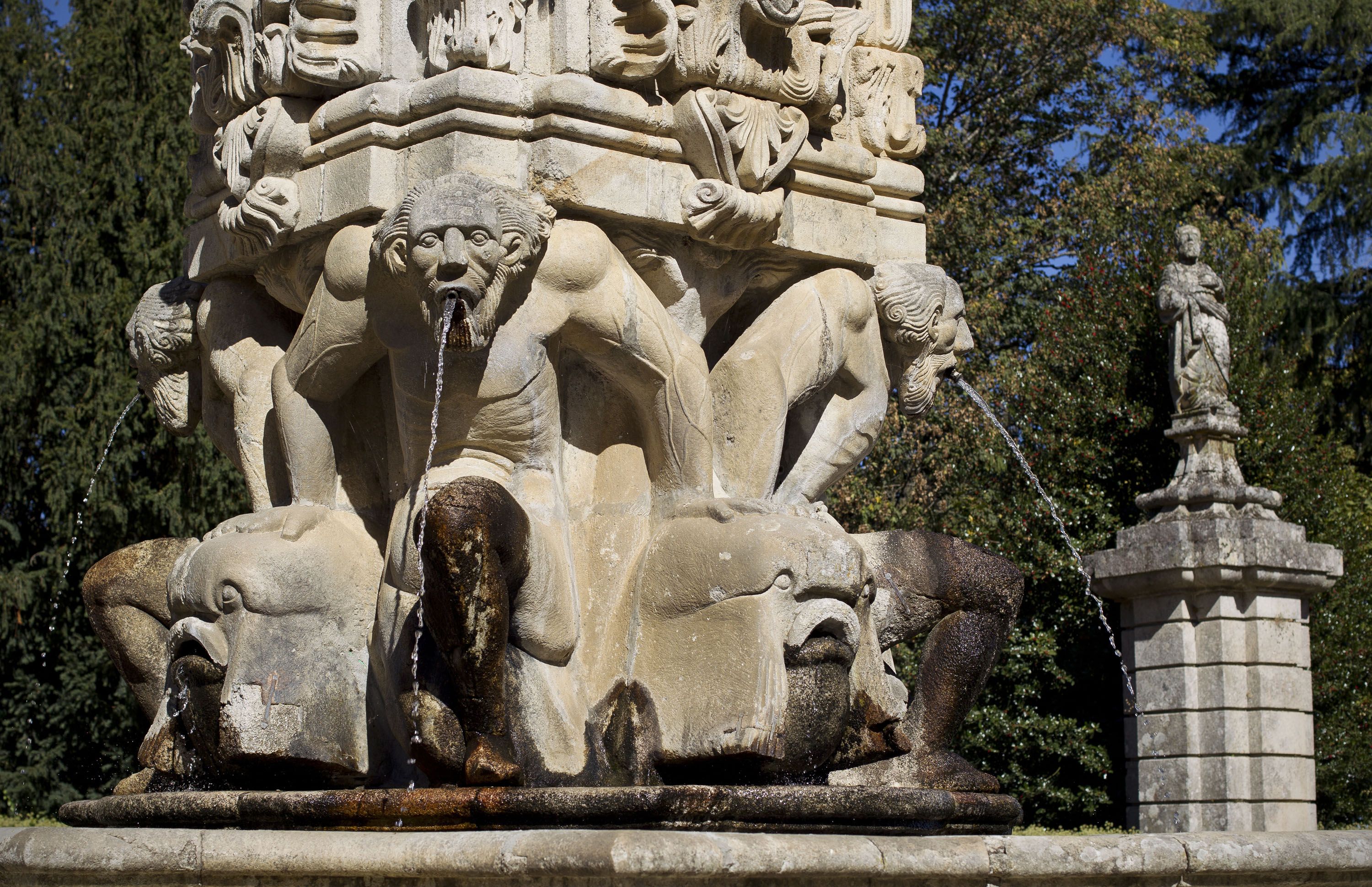 La fuente fue diseñada por Nicolau Nasoni. La fuente fue construida en 1738, como muestra el grabado visible en la parte superior, y es anterior al actual Santuario.
