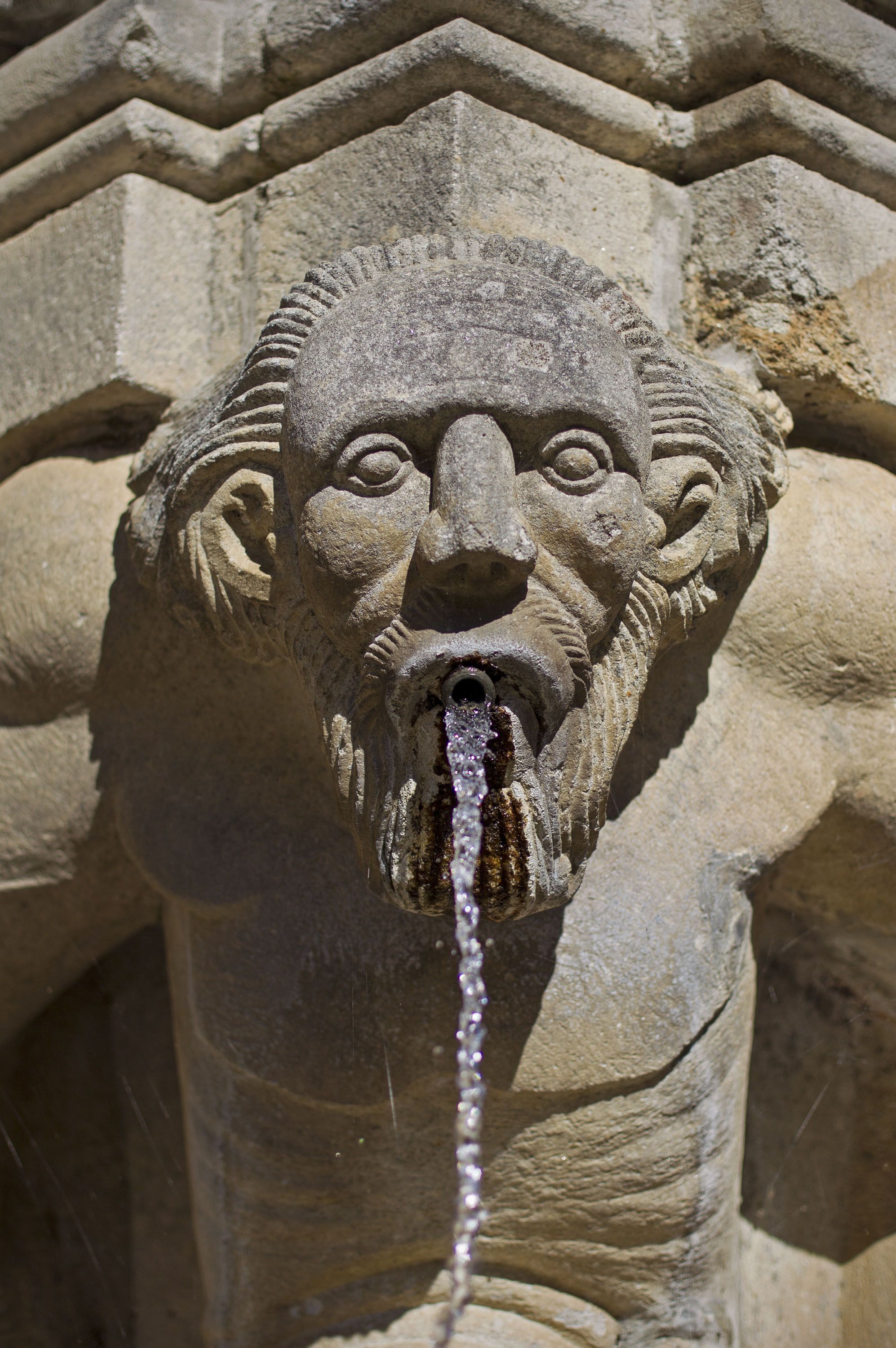 El retablo de cantería está muy bien diseñado y tiene dos caños que vierten agua ininterrumpidamente, sin que se recuerde que se hayan secado nunca. En la parte superior hay una cruz adornada en el lateral por dos flores de lis. Debajo y en el centro hay un panel liso de forma ovalada donde, según algunos testimonios, había inscripciones en letras doradas.