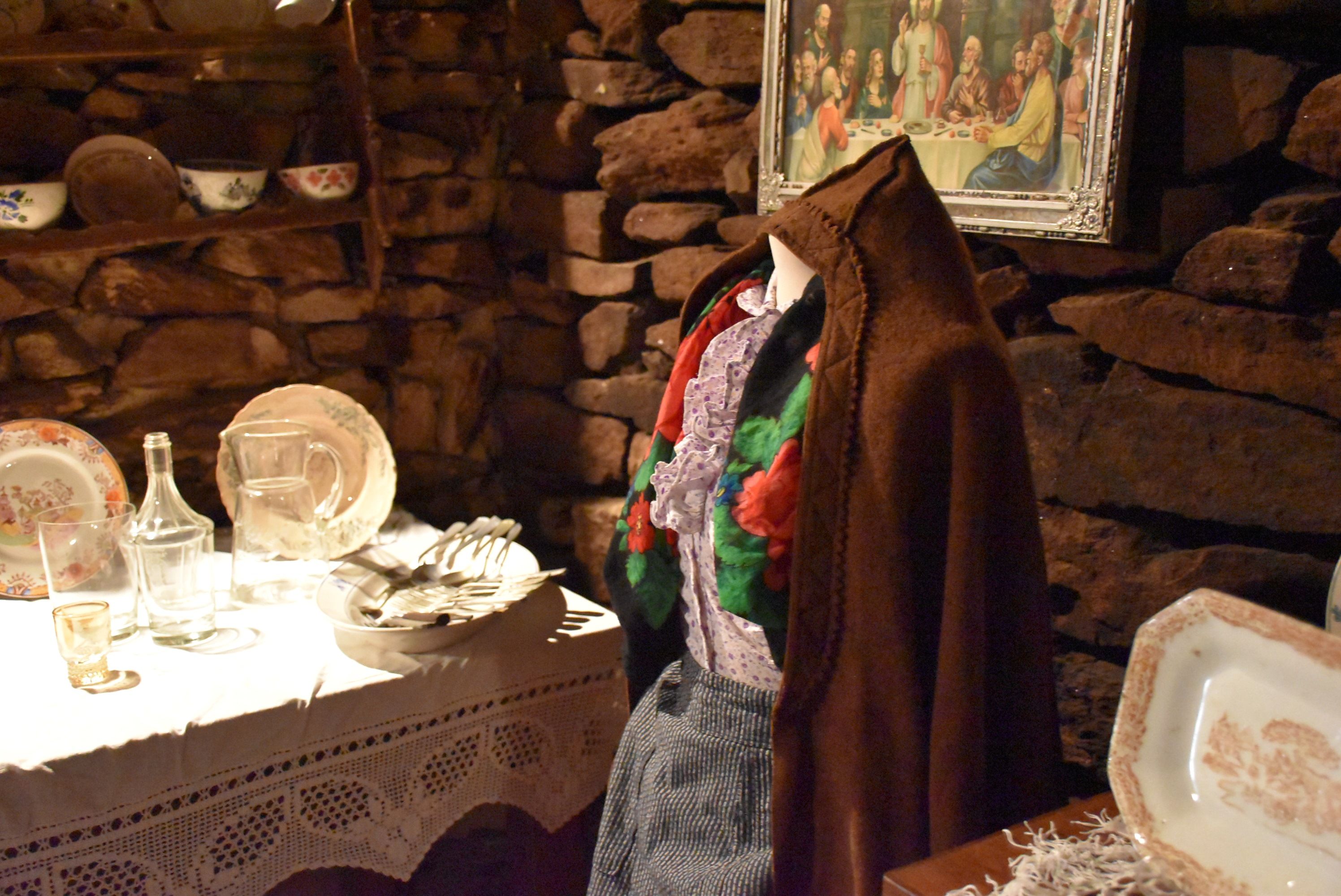 On y trouve de véritables reliques qui remplissaient autrefois les maisons et la vie des gens, des casseroles en fer à la houe que l'on trouvait dans les cuisines, les sabots à côté du lit, le téléphone sur l'armoire de la cuisine, le trousseau au bout du lit, les paillasses que l'on utilisait pendant les nuits d'hiver les plus froides, les édredons en chiffon.