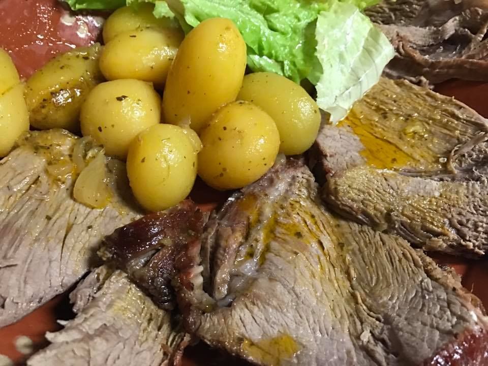 - Chevreau avec des pommes de terre rôties au feu de bois