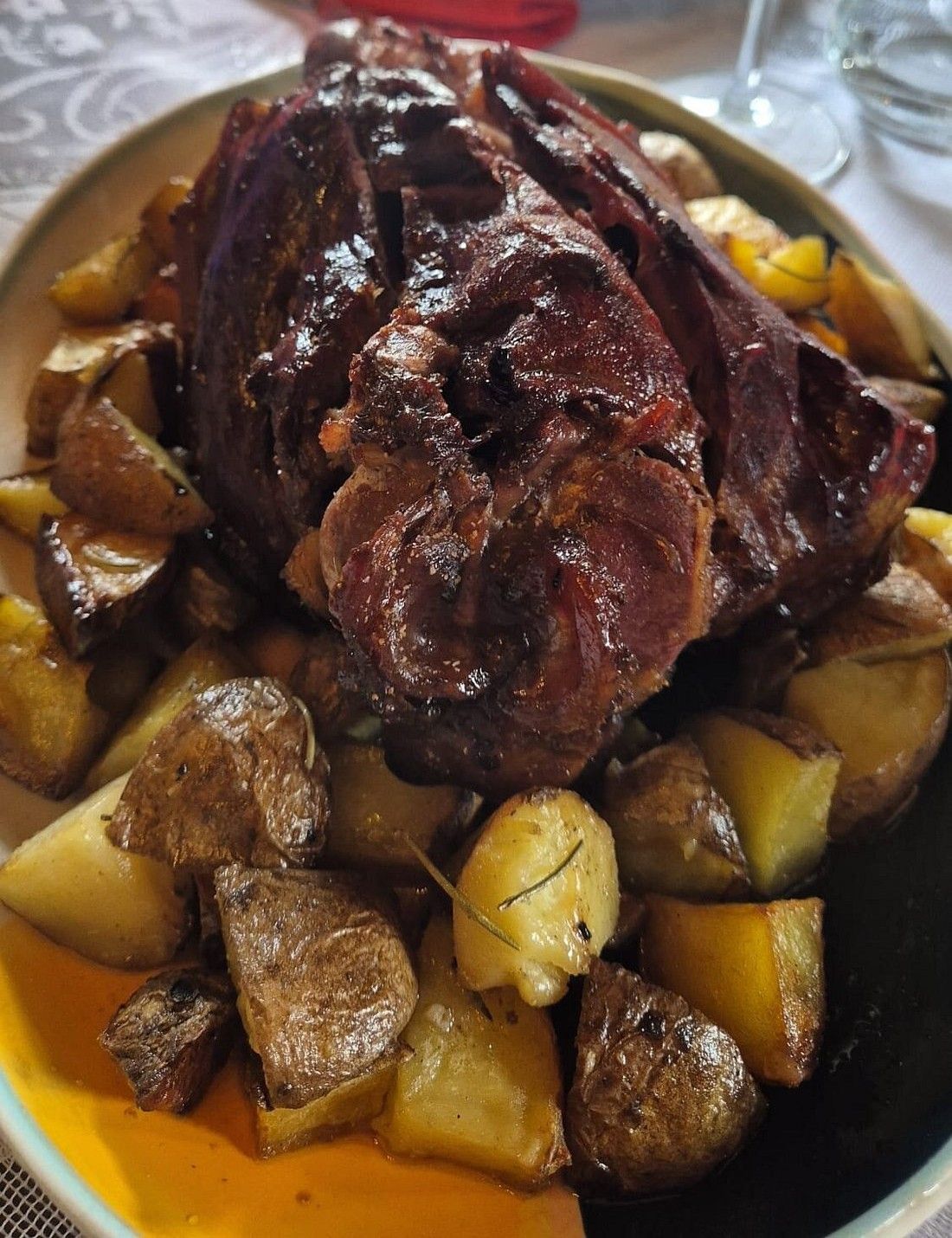 - Pernil em Vinho do Porto com batatas assadas, arroz e salada